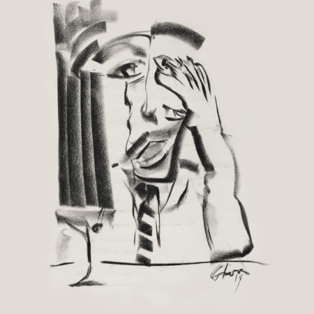 Charcoal drawing by Doug Gilmour - Man with Cocktail